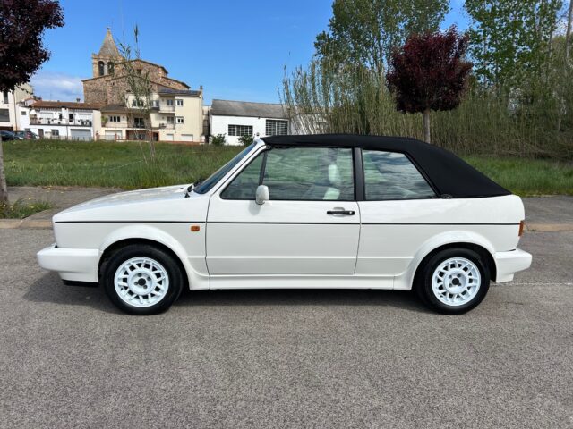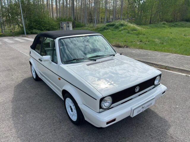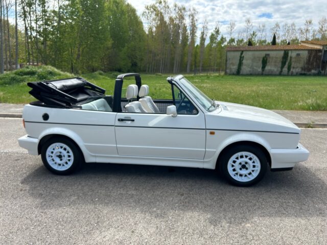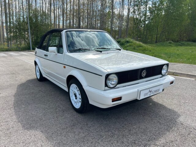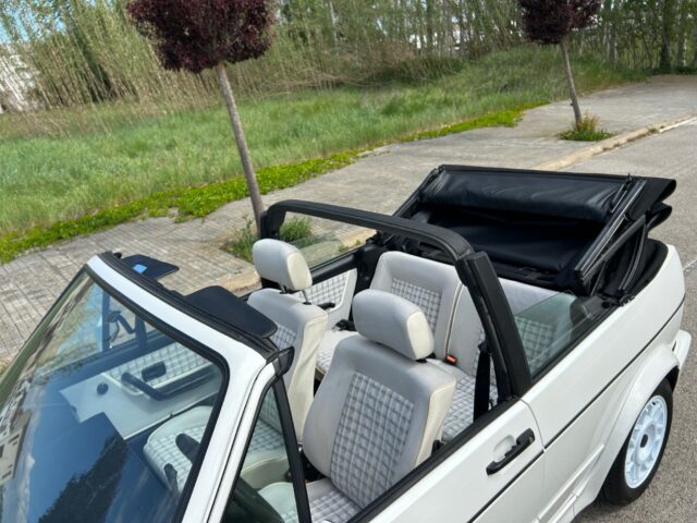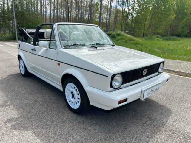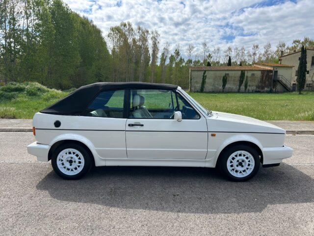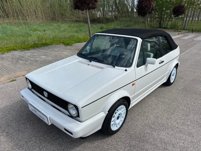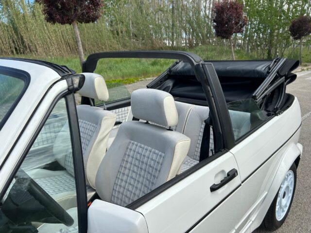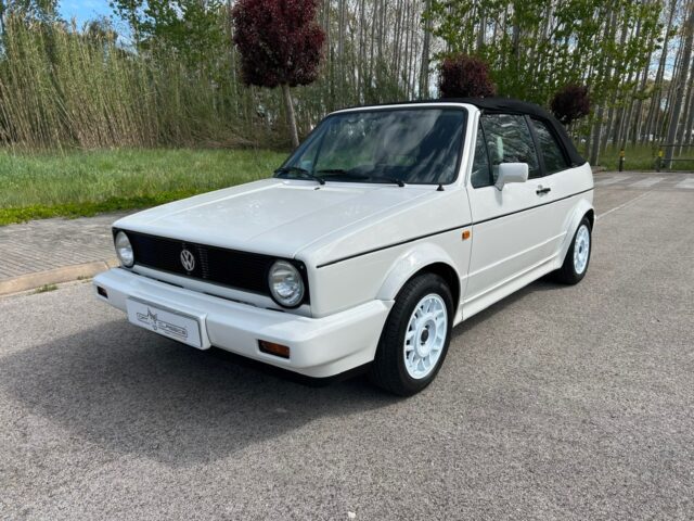 Volkswagen Golf Cabriolet, 1992, one of the most representative convertible versions of the German brand, equipped with the reliable 1.8L engine producing 112 hp. 153,647 km. White with black soft top. White-grey cloth interior.