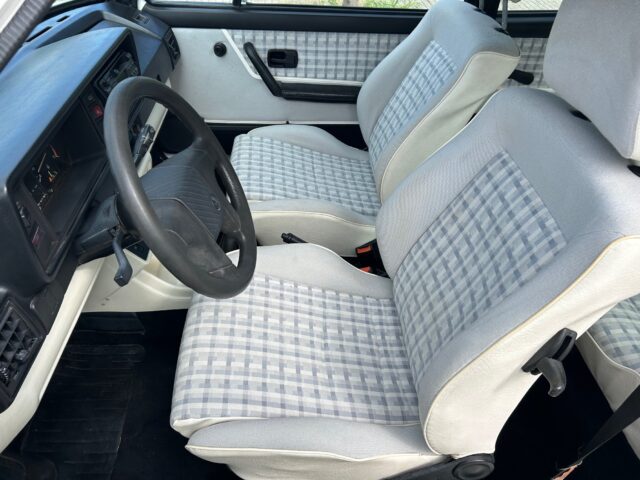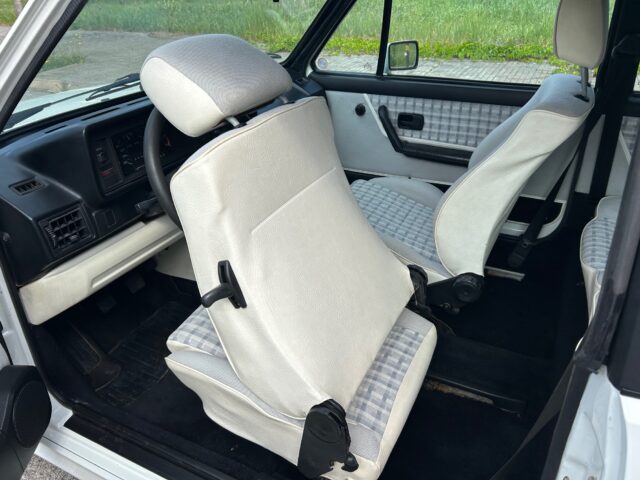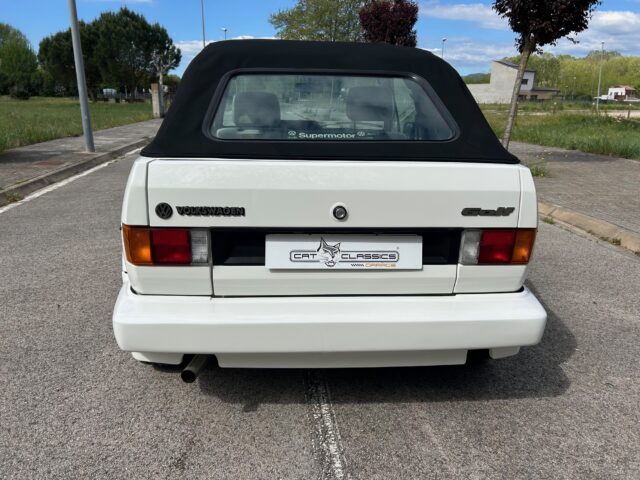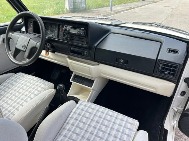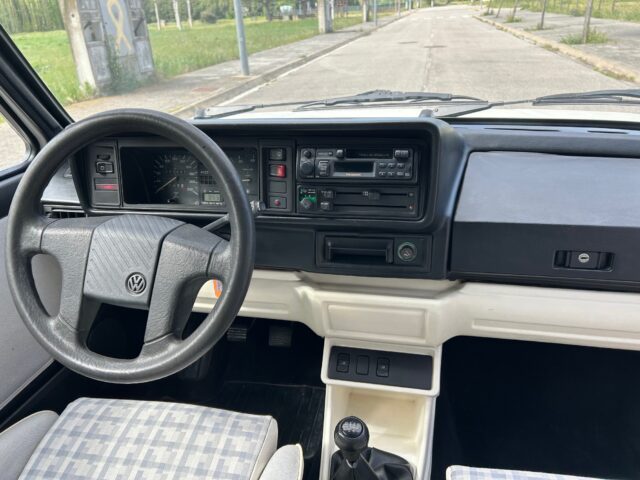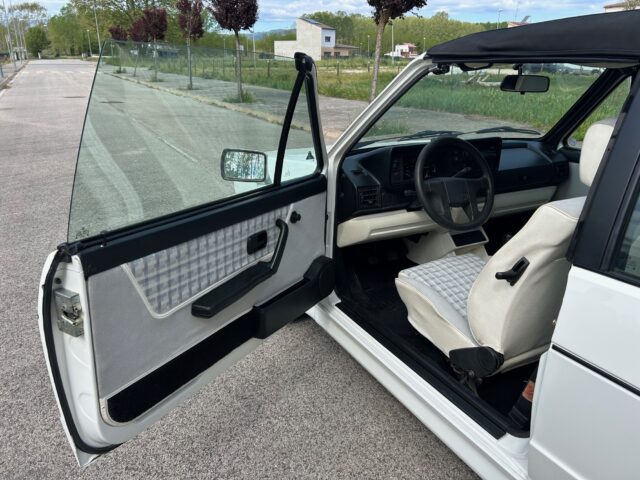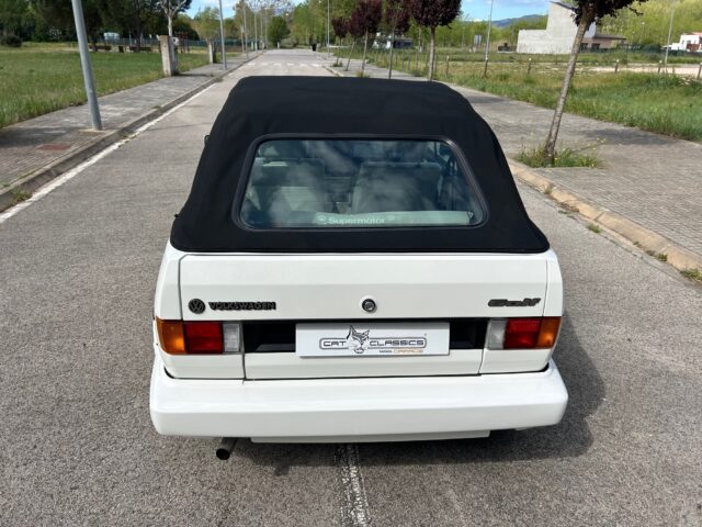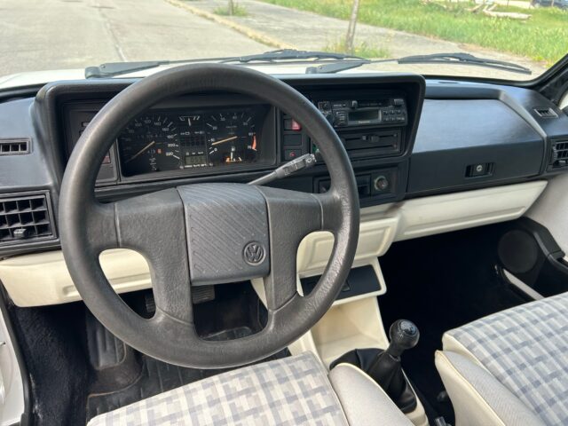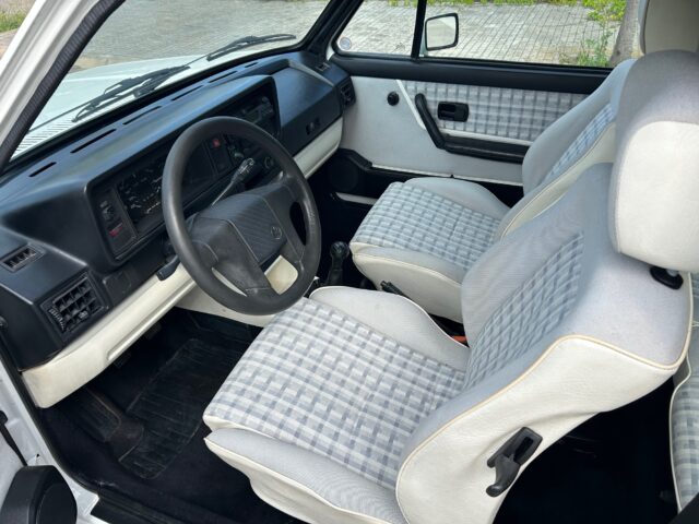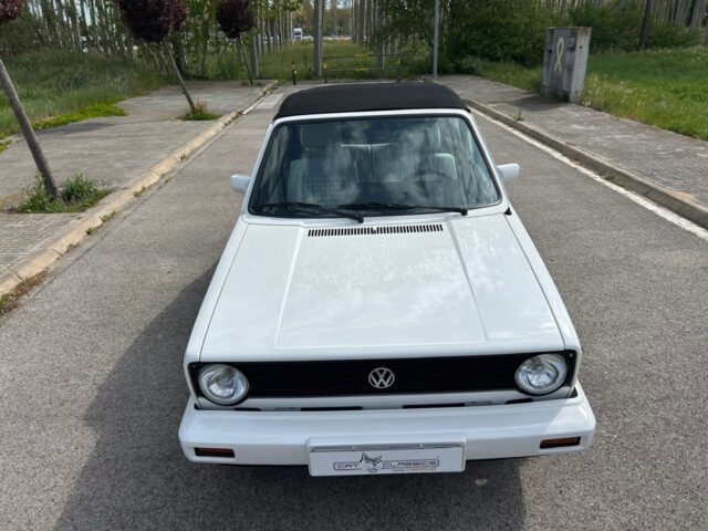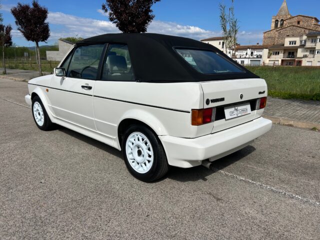 Volkswagen Golf Cabriolet, 1992, one of the most representative convertible versions of the German brand, equipped with the reliable 1.8L engine producing 112 hp. 153,647 km. White with black soft top. White-grey cloth interior.