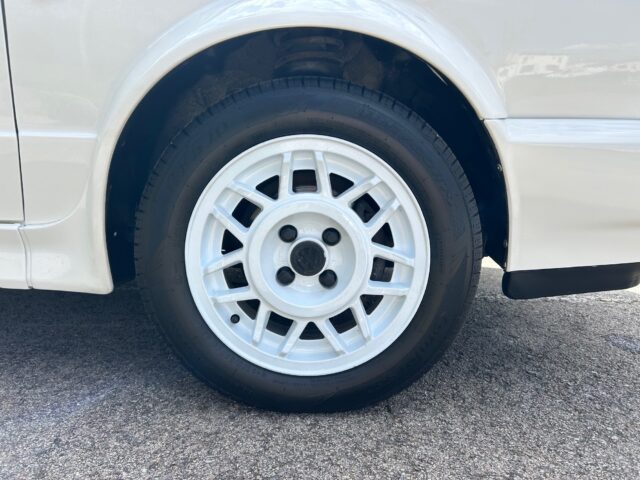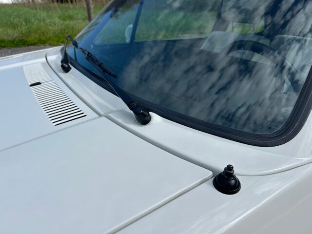 The vehicle features an elegant white configuration, recently fully repainted while respecting the original factory finish. The restoration was carried out with complete disassembly of all components, achieving a high-quality and uniform result, including areas such as the engine bay and trunk.